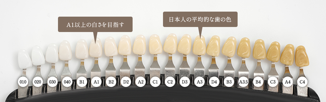 加齢や遺伝、食生活などによって変色した歯を特殊な光と薬剤で歯を白くしていきます。