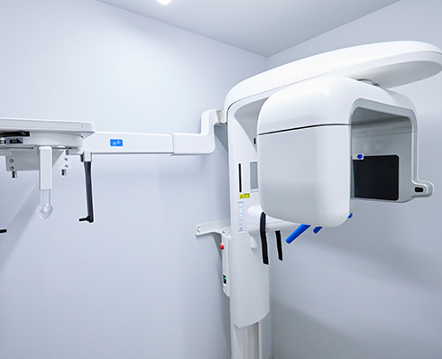 一般の歯科医院にはない、矯正歯科用の特別なレントゲンで、頭を基準にして歯の傾き、上下の顎骨の位置関係や歯列の形態や位置に関する特徴や成長を評価し、理想の歯並びになるように診査診断を行います。