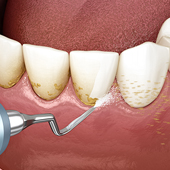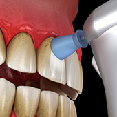 超音波を利用して、歯の表面や歯肉の中に付着している歯石をキレイに取り除き、クリーニングします。