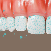 クリーニングで取り切れなかった歯石やバイオフィルムを専用の研磨剤と器具で磨き、歯の表面をツルツルに磨きます。